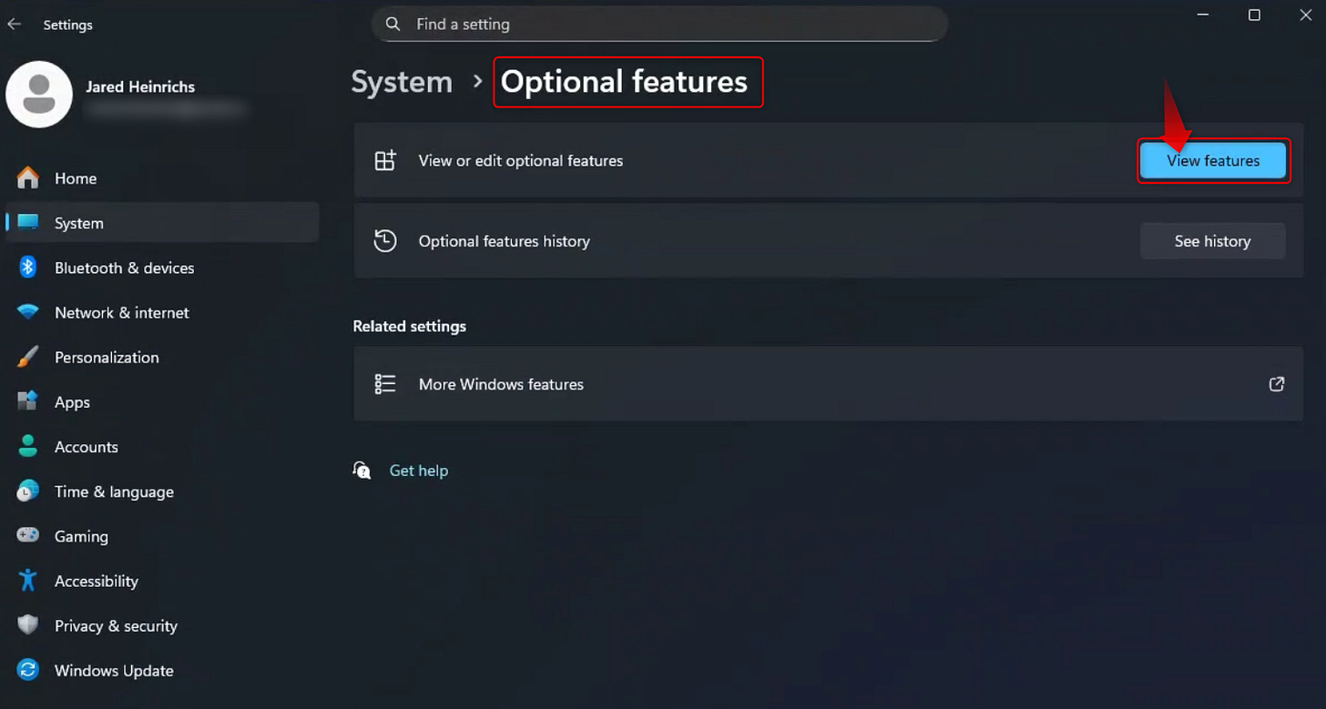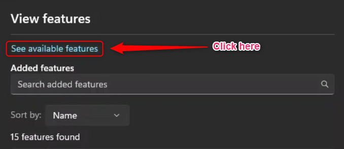 The window that opens only shows the features “currently” installed. To see the features you can install, you must click “See available features,” which doesn’t visually indicate that it's clickable… At least to me. What do you think? I think Microsoft should turn it into a button.