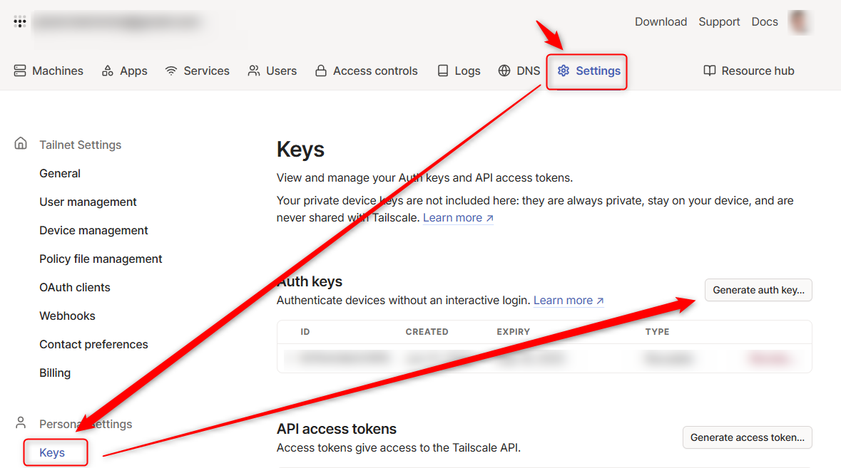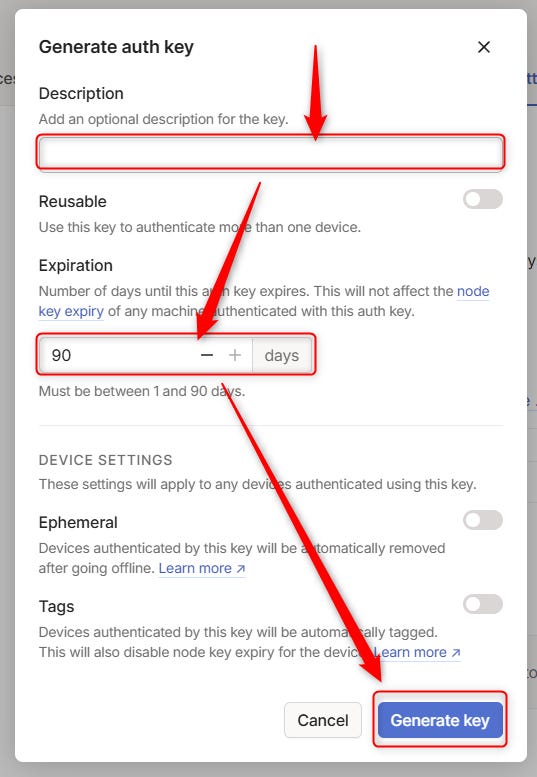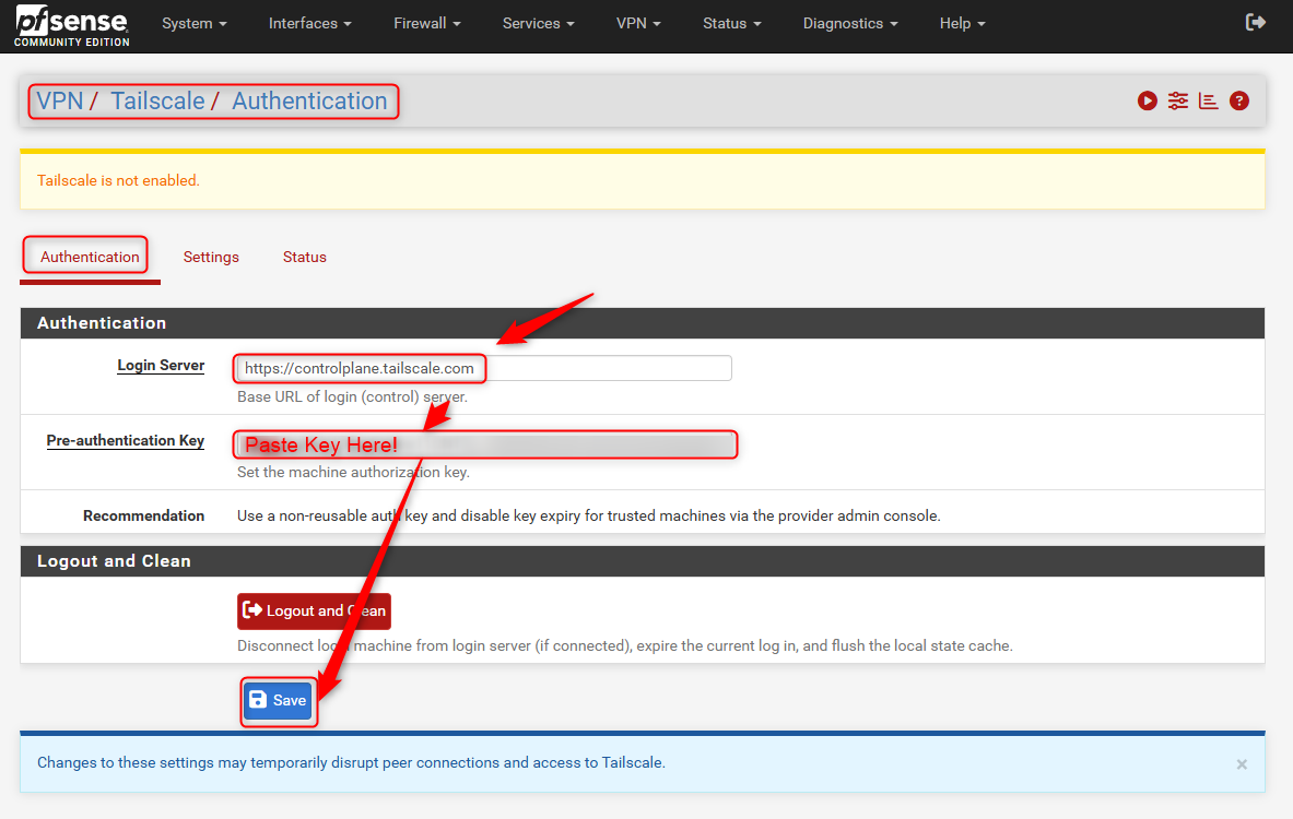 https://login.tailscale.com/admin/settings/keysTake the output of the key and paste it into PFsense