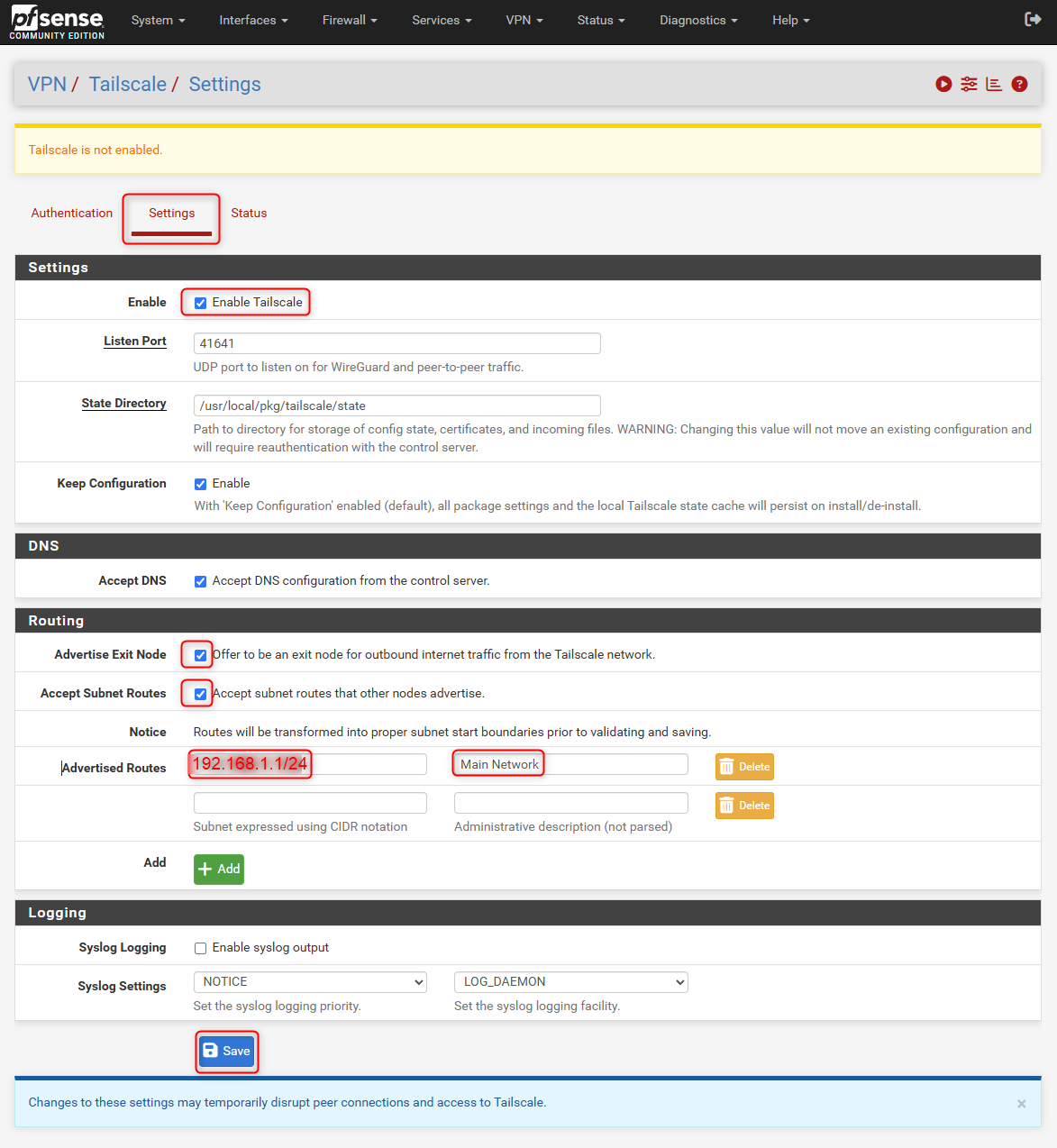 System / Package Manager / Available PackagesSearch for Tailscale and hit the install button. Tailscale will show up in the VPN drop-down menu.