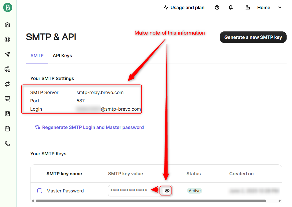 Get your Brevo Username and Password info